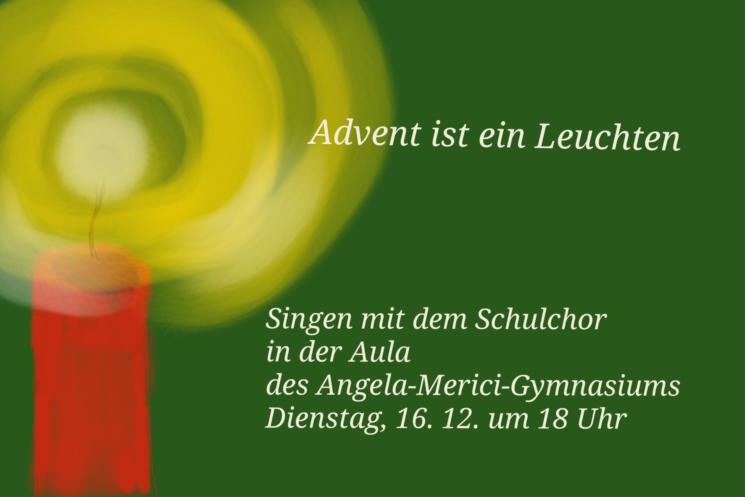 Adventliches Singen By Sinan NarinIn Ankündigungen, Schuljahr 2025/26Posted November 7, 2025 Herzliche Einladung zu einem besinnlichen und fröhlichen adventlichen Singen mit der Chor AG , Barbara Kalicki, Stefan Dietz am Klavier und einigen Schülern mit Streichinstrumenten!Bei einigen Liedern darf wieder mitgesungen werden.Das Plakat wurde entworfen von Doris Stuke.