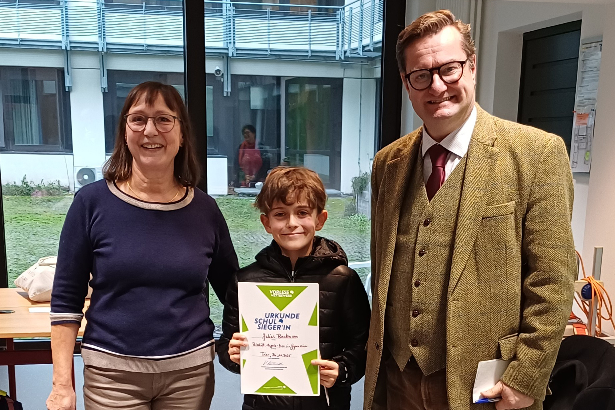 Er wird unsere Schule nun im Februar im Stadtentscheid vertreten. Dafür drücken wir alle ihm ganz fest die Daumen und gratulieren allen dreien, vor allem aber Julius ganz herzlich zu seinem Erfolg.